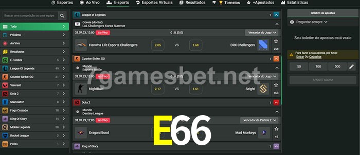 A aposta E66 oferece aos jogadores a experiência mais conveniente de apostas em eSports!